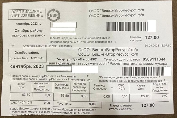 Вновь две квитанции за мусор получили жители Октябрьского района.