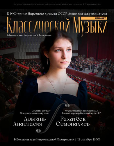 Концерт посвящен 100-летию композитора и дирижера, народного артиста СССР, Героя Кыргызской Республики Асанхана Джумахматова. Главный дирижер — Народной артист КР Рахатбек Осмоналиев.