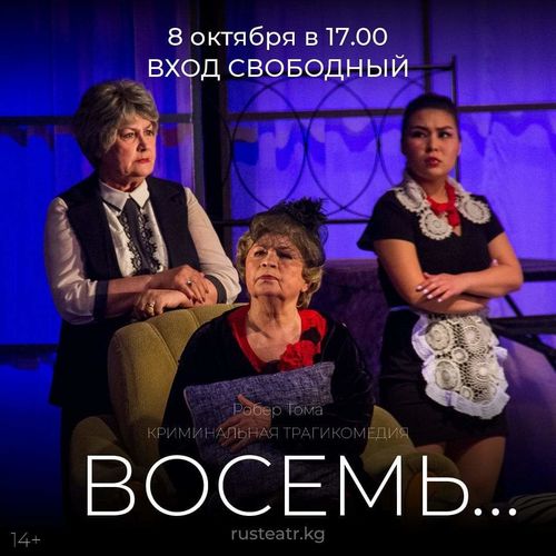 В Бишкеке 8 октября состоится благотворительный показ спектакля «Восемь...» Об этом сообщили в Государственном национальном русском театре драмы имени Чингиза Айтматова.