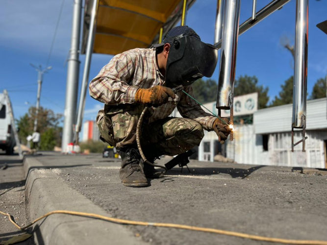 — На пересечении проспекта Чуй и улицы Тоголока Молдо (остановка «ГНС») ведутся работы по демонтажу остановки, корчевке пней, расчистке территории и монтажу подпорной стенки, процесс завершен на 70 процентов.