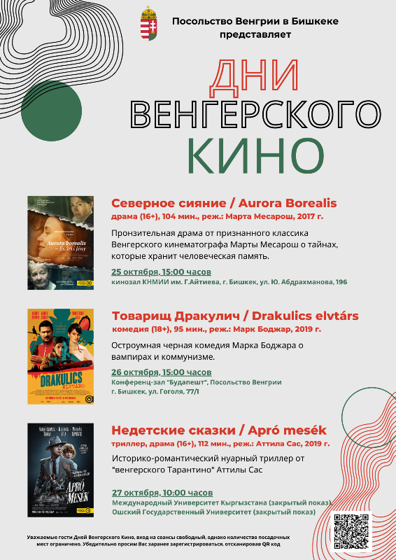В этом году зрители увидят фильмы «Аврора Бореалис: Северное Сияние» Марты Месарош, «Товарищ Дракулич» Марка Боджара и «Недетские сказки» Аттилы Сас. Регистрация на показы по ссылке.