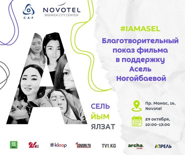 В Бишкеке пройдет показ художественного фильма в поддержку Асель Ногойбаевой, изувеченной бывшим мужем в селе Селекционном. Цель — привлечь внимание общественности Кыргызстана к проблемам домашнего насилия в отношении женщин и девочек и мобилизация средств для помощи Асель Ногойбаевой. Собранные деньги от продажи билетов будут переданы пострадавшей на операцию. Подробнее