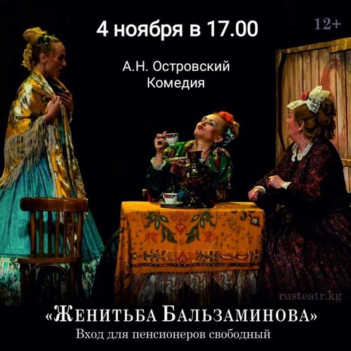 Государственный национальный русский театр драмы имени Чингиза Айтматова 4 ноября приглашает на благотворительный показ спектакля «Женитьба Бальзаминова». Об этом сообщили в театре.