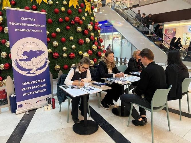 В торговых центрах Бишкека проводятся бесплатные правовые консультации в рамках международной акции «16 дней против насилия». Сотрудники института омбудсмена отвечают на вопросы горожан о законодательстве и юридических аспектах в вопросах гендерного насилия.