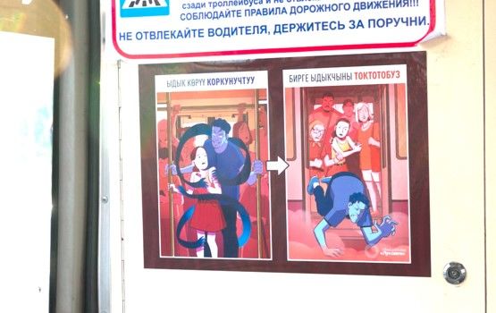 В автобусах и троллейбусах Бишкека и Оша появились новые плакаты со слоганом «Ыдык көрүү коркунучтуу. Бирге ыдыкчыны токтотобуз» («Сталкиваться с домогательством — это страшно. Вместе остановим насильника»). Они призывают повысить осведомленность пассажиров о домогательстве в общественном транспорте и побуждают к действиям при столкновении с ними.