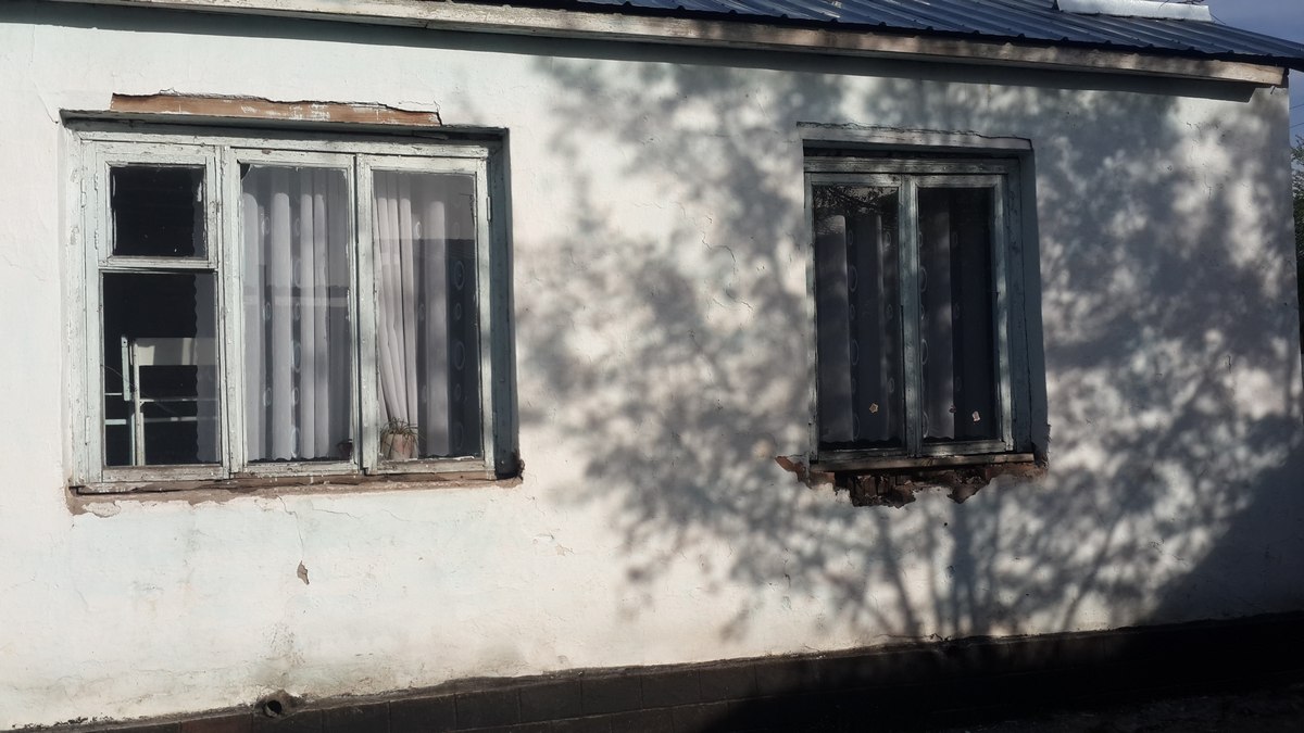 В здании есть множество повреждений и трещин. «Протекает потолок, приходится ставить ведра, полы погнулись, двери и окна сгнили. К тому же возле здания нет арыка, куда стекала бы дождевая вода, все накапливается у стен школы, поэтому у нас большая сырость, до сих пор ходим в сапогах», - посетовали они.