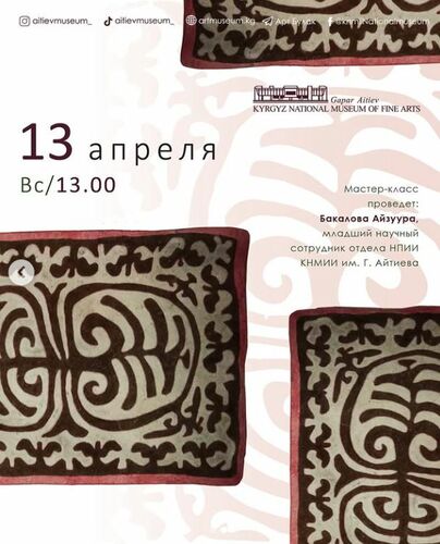 Мастер-класс «Ширдак неизвестного автора на акварели» проведет младший научный сотрудник отдела музея Айзуура Бакалова. Регистрация по телефону 0500774112.