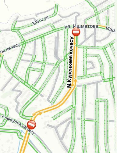 По ее данным, в связи с началом капитального ремонта на улице Куренкеева временно перекроют участок дороги от перекрестка с улицей Алыкулова до улицы Ишматова.