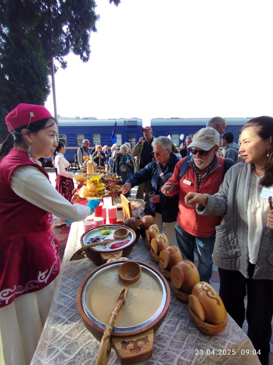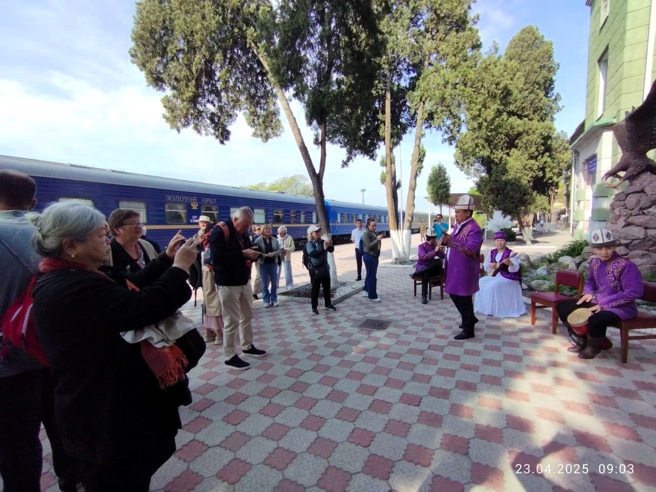«В поезде путешествуют более 60 иностранных туристов из стран Западной Европы, Северной Америки, которые ознакомятся с достопримечательностями нашей страны. Национальный перевозчик ГП «НК «Кыргыз темир жолу» обеспечил проследование поезда строго согласно расписанию движения, а также организовал торжественную встречу гостей на ж/д вокзале «Бишкек-2». Данное туристическое путешествие является важным шагом в развитии туристического потенциала Кыргызстана и углублении регионального сотрудничества», — говорится в сообщении.