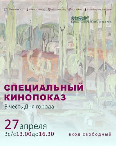 В Кыргызском национальном музее изобразительных искусств имени Гапара Айтиева 27 апреля состоится специальный кинопоказ в честь Дня города. Об этом сообщается на странице в КНМИИ в Facebook.