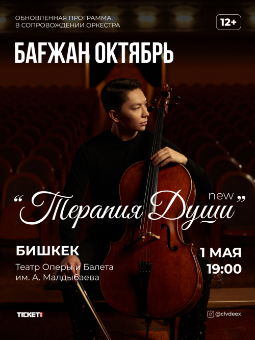 Один из самых узнаваемых виолончелистов из Казахстана Багжан Октябрь — музыкант, чьи концерты собирают полные залы по всему миру. «Терапия души» — это не просто концерт, а живой диалог со зрителем. Виртуозное исполнение, проникновенные мелодии и магия сцены создают пространство, где каждая нота наполняет душу светом, а сердце — теплом.