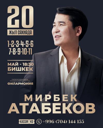 За два десятилетия Мирбек Атабеков превратился в настоящую легенду кыргызской эстрады. Его песни стали саундтреком жизни для миллионов слушателей, а искренность и самобытность его творчества — визитной карточкой артиста.