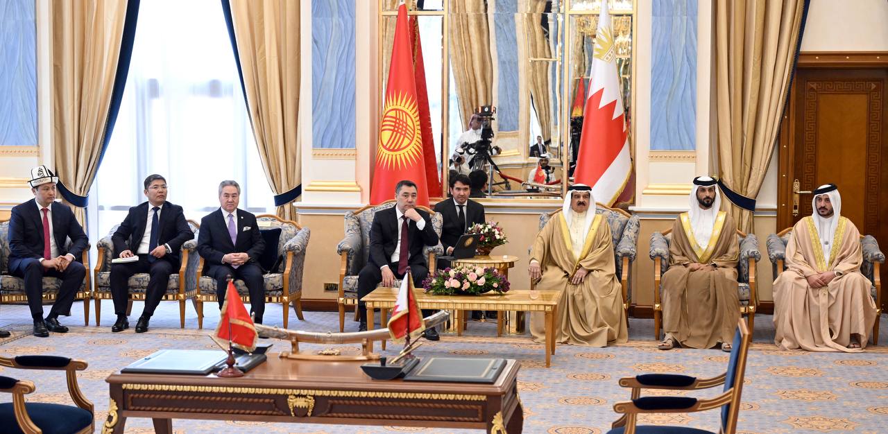 Состоялся первый в истории официальный визит Садыра Жапарова в Королевство Бахрейн, в рамках которого состоялись переговоры с королем Хамадом бин Иса Аль Халифой, подписан ряд двусторонних соглашений в сферах здравоохранения, инфраструктуры, культуры, юстиции и религии.