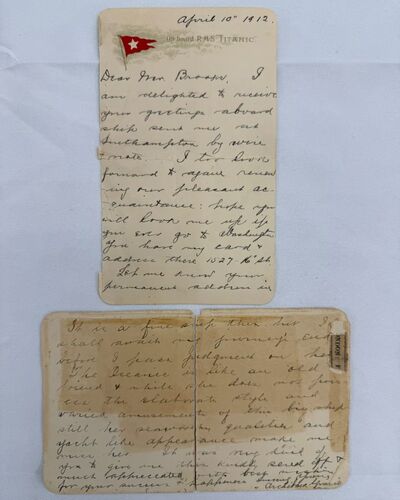 Автор письма — полковник Арчибальд Грейс, который путешествовал первым классом. Послание датировано 10 апреля 1912 года — днем, когда он поднялся на борт «Титаника» в Саутгемптоне. Конверт содержит почтовые отметки Квинстауна (11 апреля) и Лондона (12 апреля).