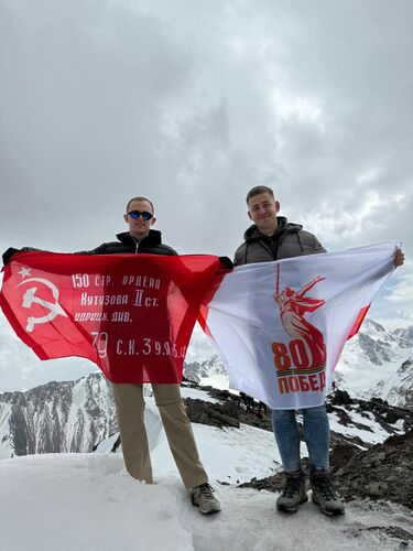 «Российские дипломаты достигли пика Комсомолец (4 тысячи 204 метра над уровнем моря) и развернули там Знамя Победы и логотип объявленного в Российской Федерации Года защитника Отечества», — проинформировали в посольстве.