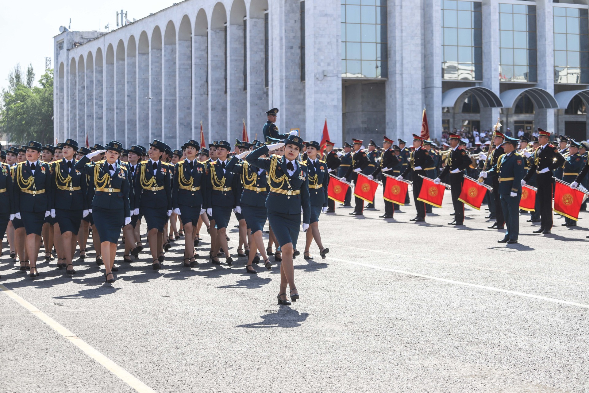 «Военнослужащие, выстроившиеся на площади Ала-Тоо, и современная военная техника продемонстрировали готовность к праздничному торжеству», — отметили в Минобороны.