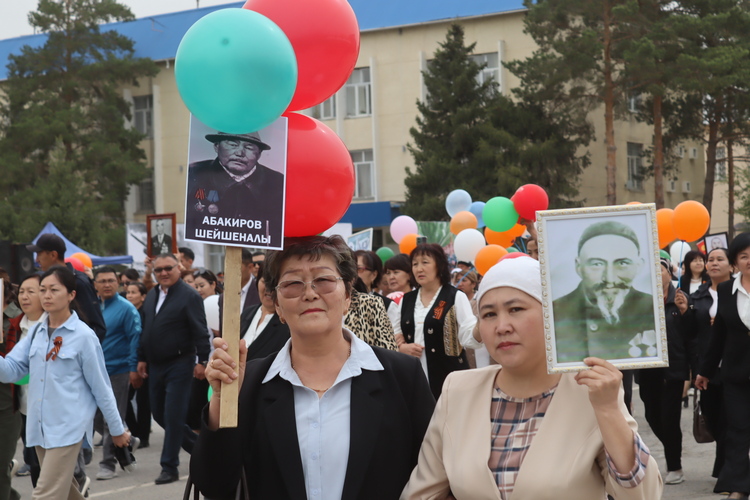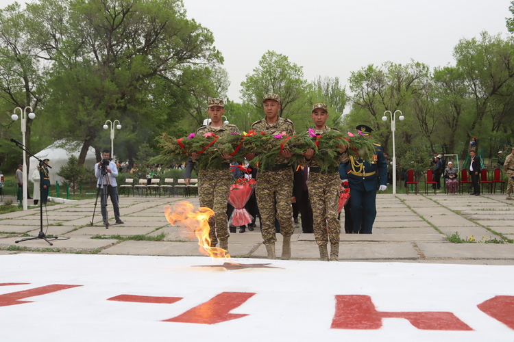 Памятная церемония началась с возложения венков к мемориалу в парке Тянь-Шаня, минуты молчания и чтения Корана в память о павших. Затем прошло шествие «Бессмертного полка».
