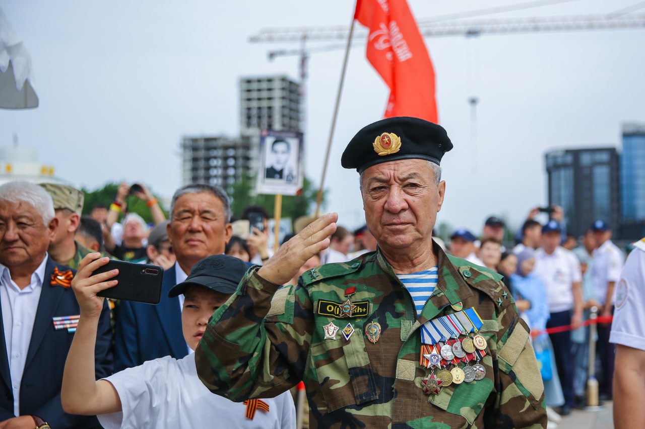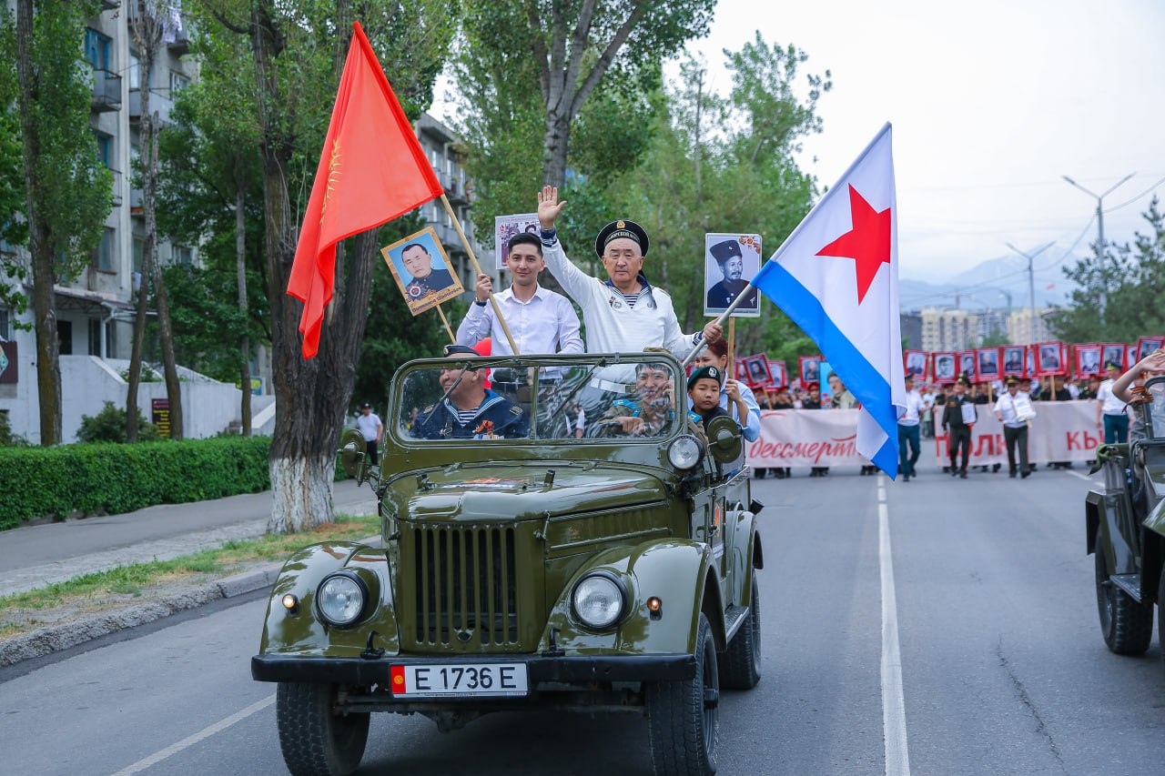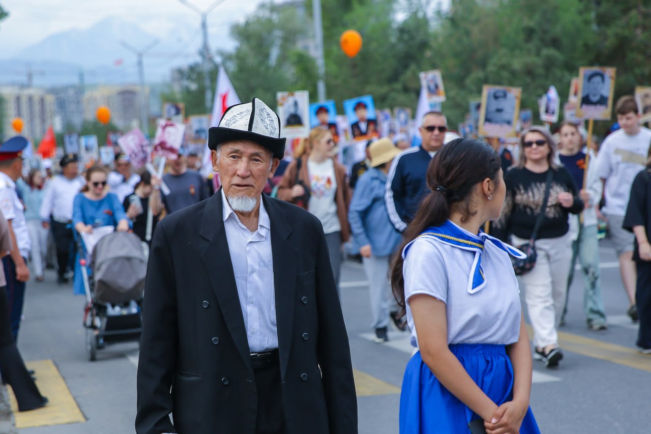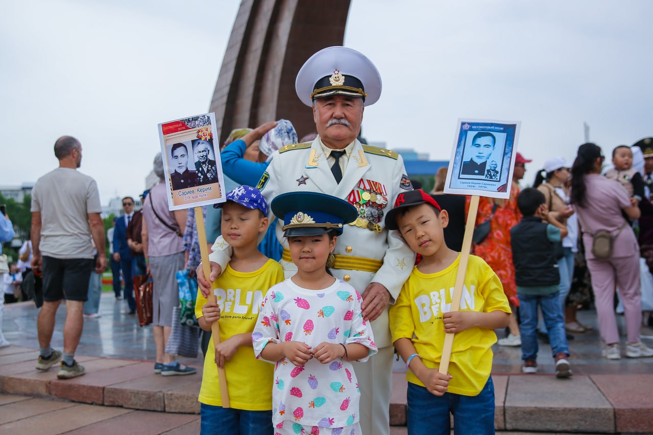 Утро в Бишкеке началось с традиционного шествия «Бессмертного полка» от парка Победы имени Дайыра Асанова на Южной магистрали до Площади Победы в центре столицы.