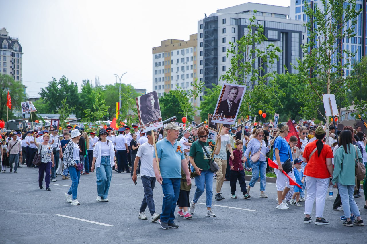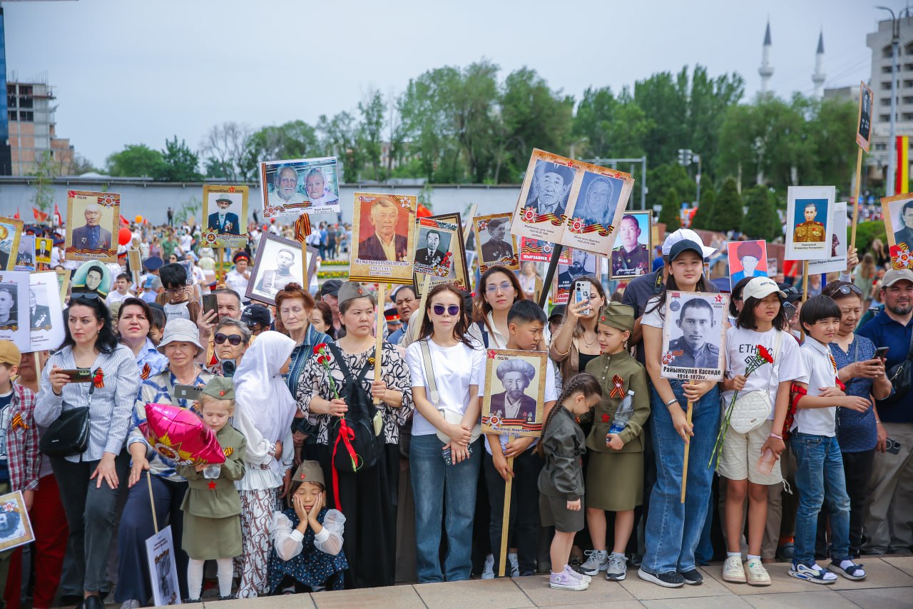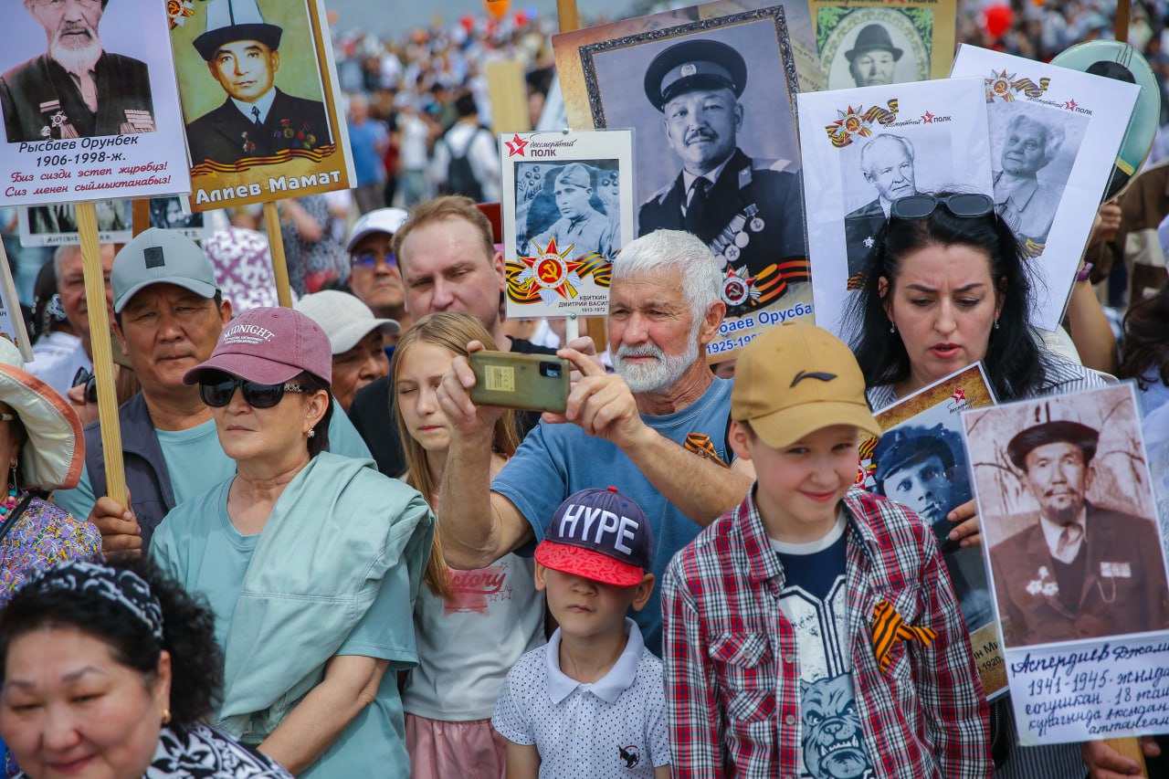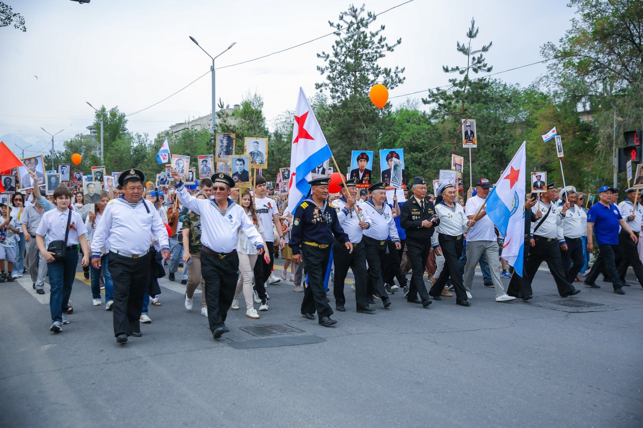 Утро в Бишкеке началось с традиционного шествия «Бессмертного полка» от парка Победы имени Дайыра Асанова на Южной магистрали до Площади Победы в центре столицы.