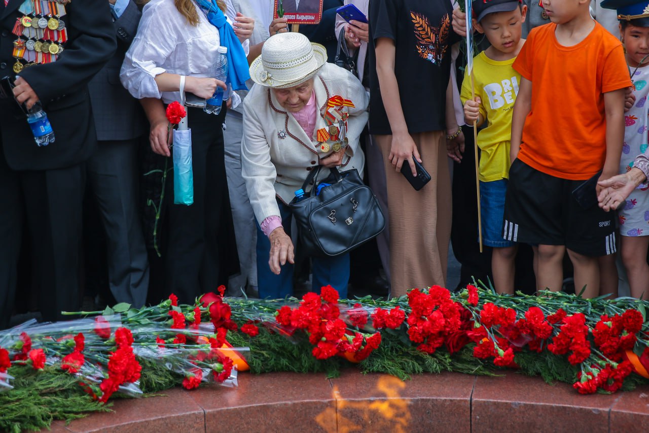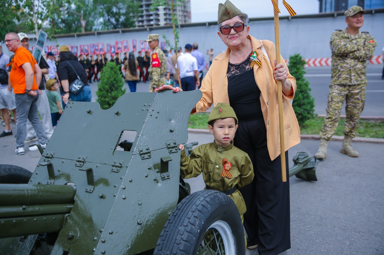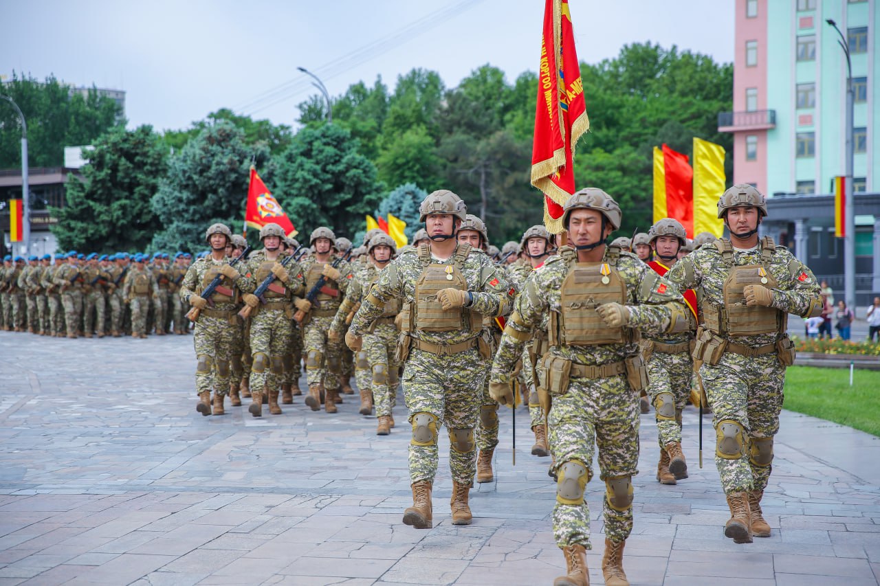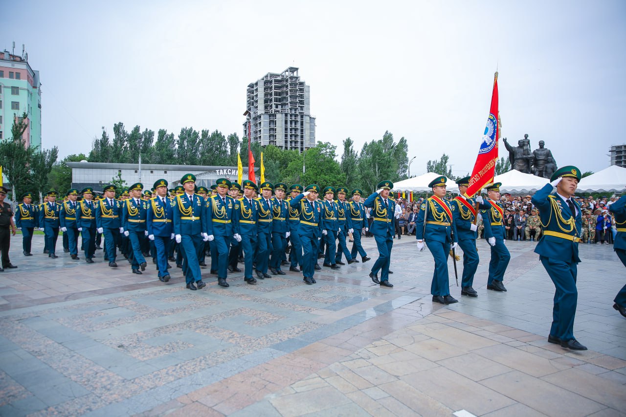 На Площади Победы их ожидали другие горожане и гости столицы. Там ветераны, мэр столицы и депутаты Бишкекского городского кенеша возложили цветы к Вечному огню. После гостей ожидала выставка военной техники и традиционная солдатская каша.