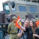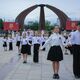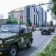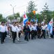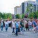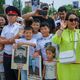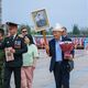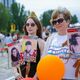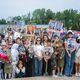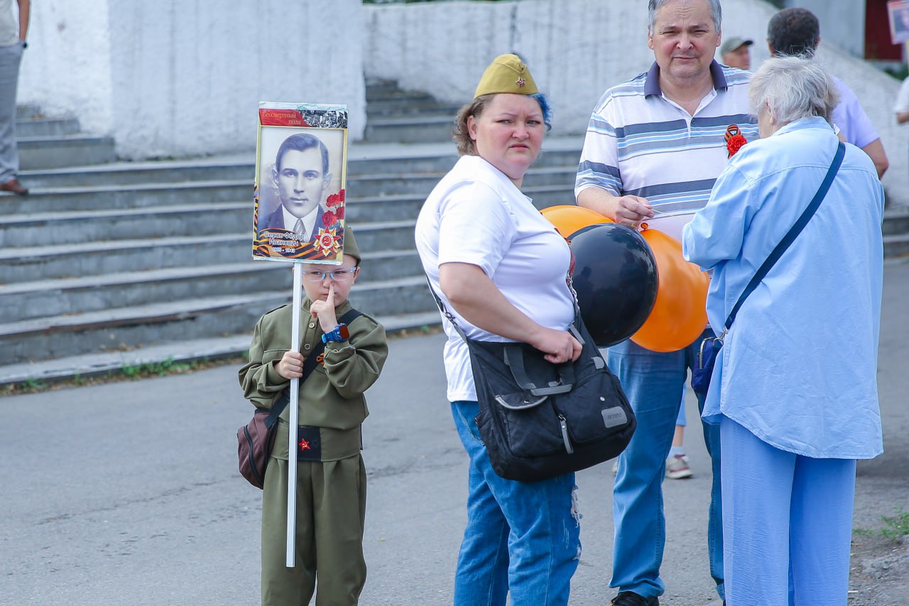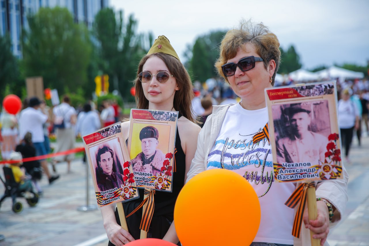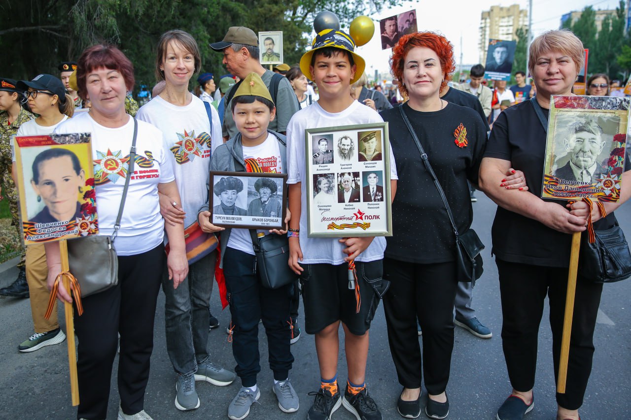 По дороге собравшиеся пели песни военных лет, фотографировались и несли плакаты с портретами предков — участников Великой Отечественной войны.