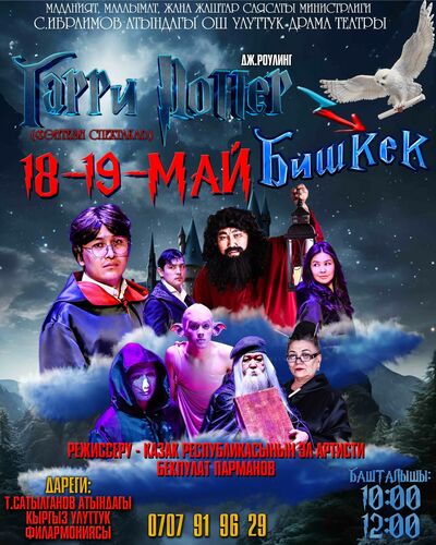 Спешите увидеть современный фэнтези-спектакль с захватывающим сюжетом о доблестном волшебнике Гарри Поттере. Сценарист и режиссер-постановщик спектакля — народный артист Казахстана Бекпулат Парманов.