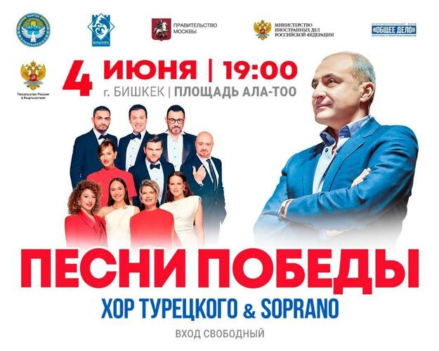 4 июня в 19.00 на площади Ала-Тоо в Бишкеке состоится концерт легендарного Хора Турецкого и женской арт-группы SOPRANO.