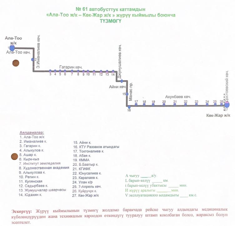 В городе Бишкеке с учетом анализа пассажиропотока, улично-дорожной сети и технических условий обновлена схема движения автобусного маршрута № 61. Об этом сообщает пресс-служба мэрии.