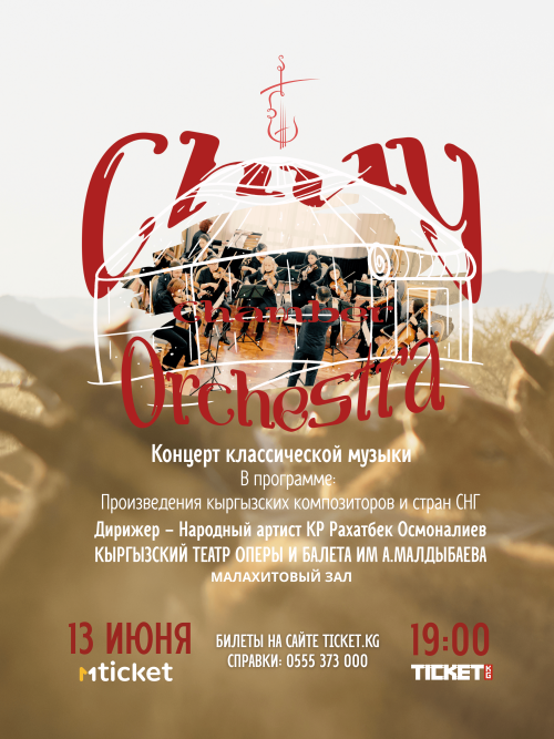Чуйский камерный оркестр приглашает на концерт классической музыки. В программе произведения кыргызских композиторов и авторов стран Содружества, вплетенные в академическое звучание, как орнамент в ковер предков. За дирижерским пультом народный артист КР Рахатбек Осмоналиев.