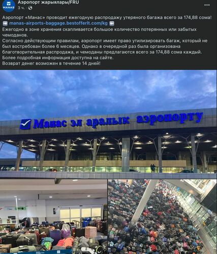 В Сети распространяется ложная информация о ежегодной акции распродажи утерянного багажа от аэропорта «Манас».