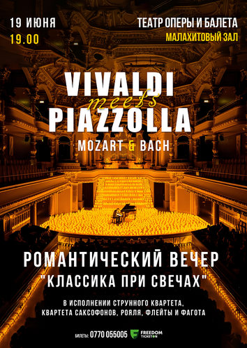 Вас ждет удивительное музыкальное путешествие сквозь времена — от Вивальди и Пьяццоллы до современной классики и мелодий, знакомых каждому сердцу. В программе: струнный квартет, рояль, квартет саксофонов, аккордеон, флейта.