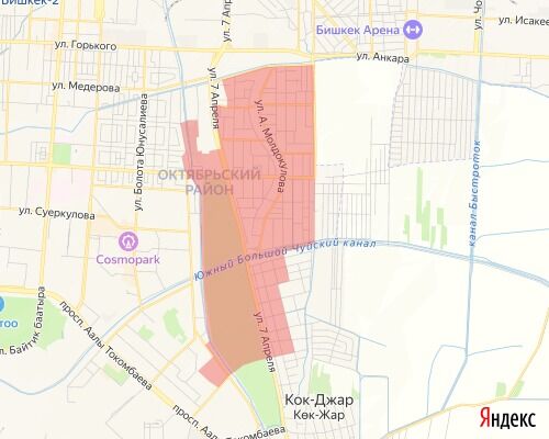 - квадрат: Карадарьинская — Ахунбаева — 7 Апреля — граница между микрорайонами «Улан-1» и «Улан-2»;