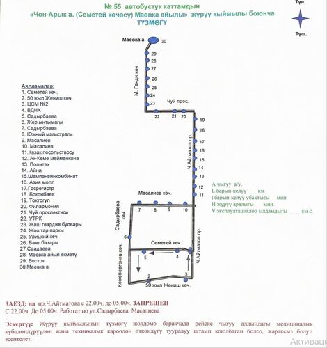 В связи с запретом на заезд на проспект Чингиза Айтматова с 22:00 до 05:00 маршрут в это время будет следовать по улицам Садырбаева и Масалиева.