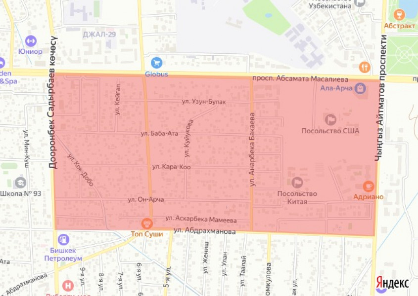 - проспекты Масалиева — Чингиза Айтматова — улицы Абдрахманова — Садырбаева;