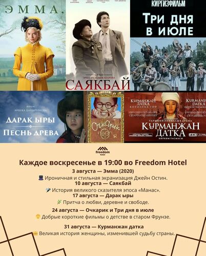 Атмосфера уюта, вкусный ужин и отличный фильм — каждое воскресенье. В этот раз покажут фильм «Эмма» — британский исторический романтический комедийно-драматический фильм режиссера Отем де Уайлд, экранизация одноименного романа Джейн Остин.