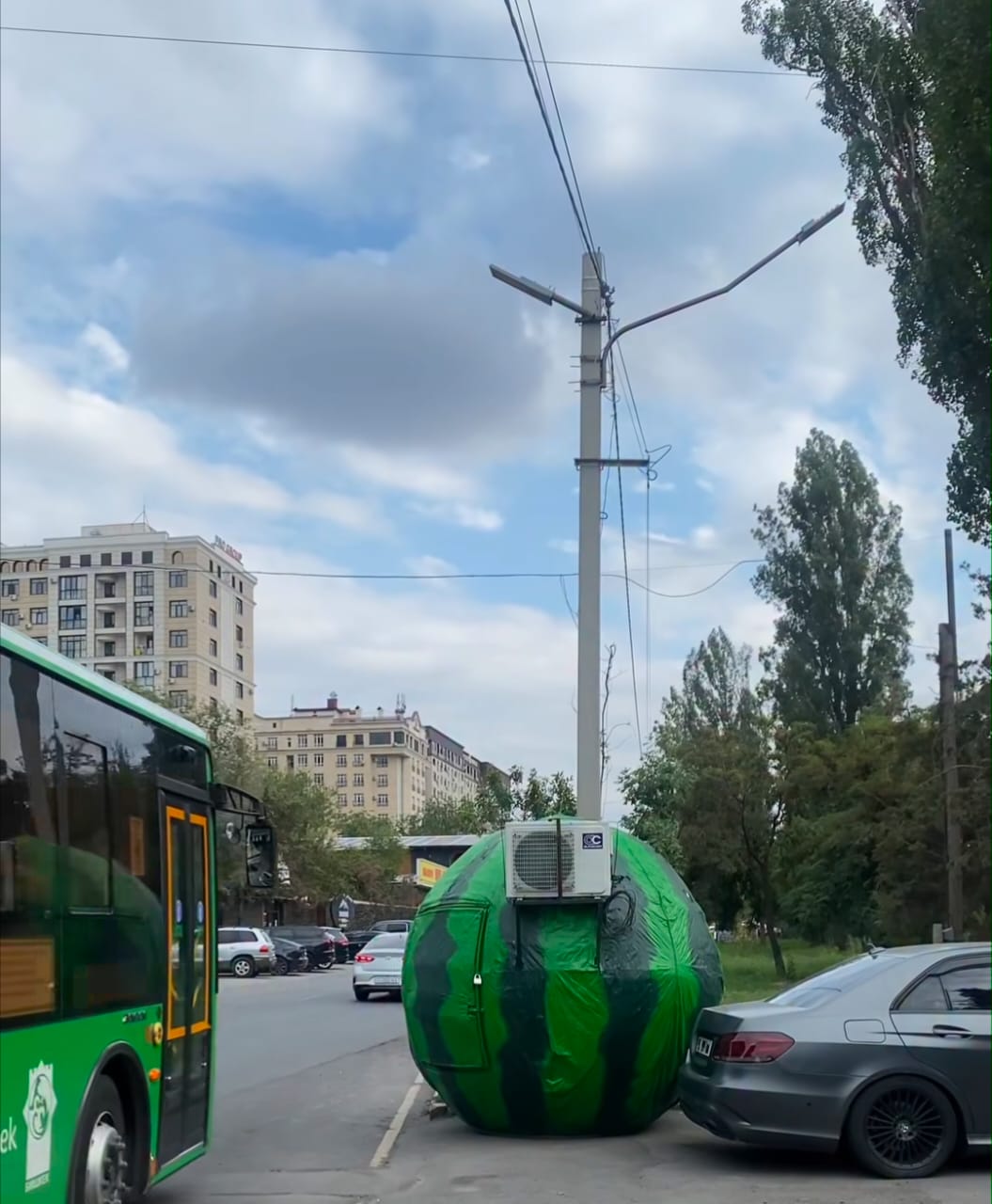 В столице Кыргызстана появились необычные торговые палатки, выполненные в форме гигантских арбузов.