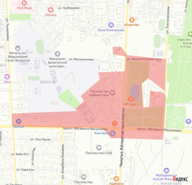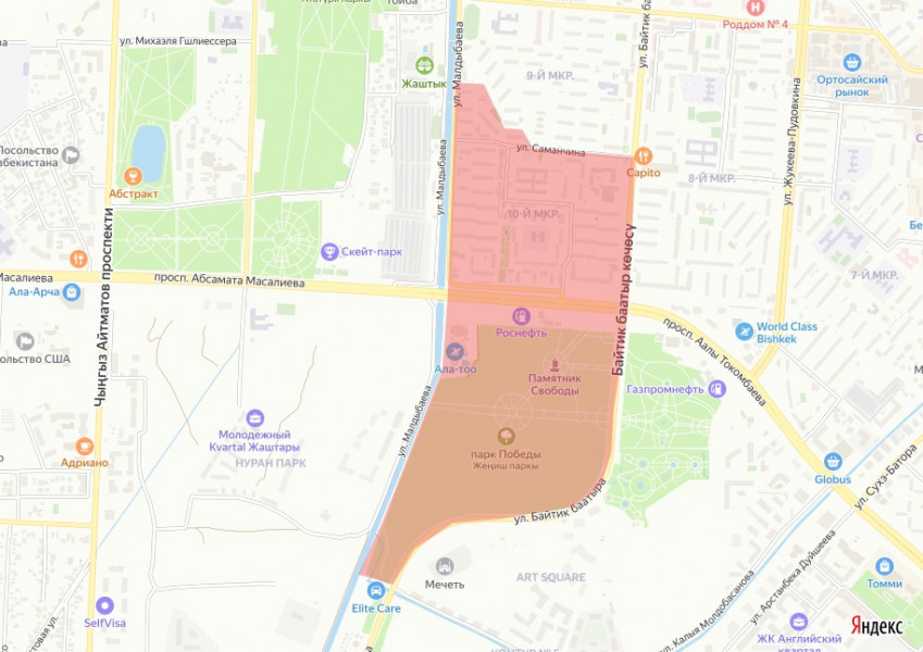 - Масалиева –проспект Айтматова – Токтоналиева – Гшлиессера.