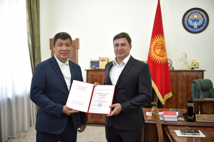 Мэр города Бишкека Айбек Джунушалиев встретился с выдающимся кыргызстанским пловцом Денисом Петрашовым и его тренером Евгением Петрашовым. Об этом сообщает пресс-служба муниципалитета.
