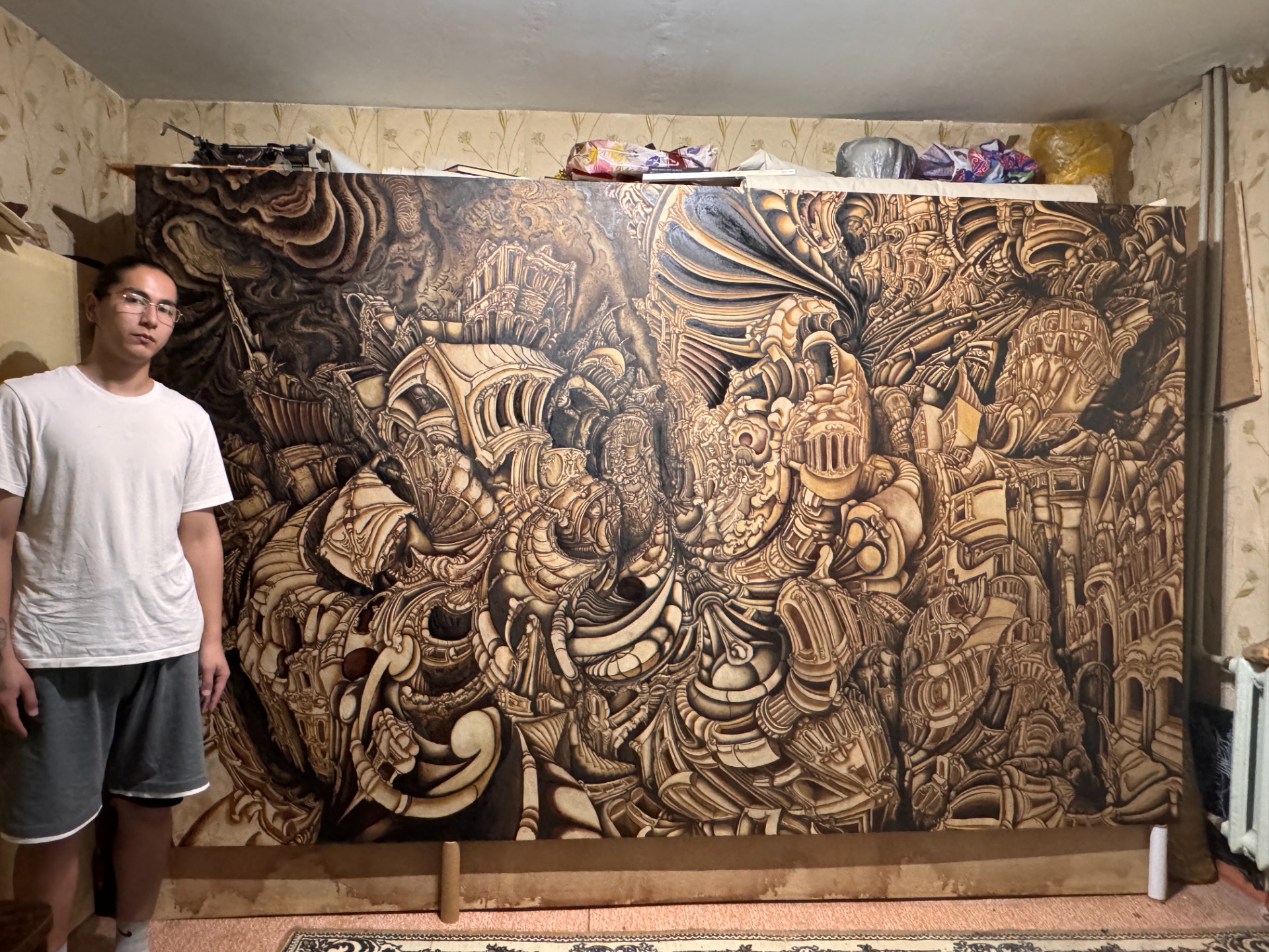 Амантур Юн лишился матери еще в девять лет. Его отец переехал в Санкт-Петербург, а он остался с тетей и дядей в Бишкеке. Отношения между ними были напряженными, и именно рисование стало для подростка способом бегства в другую реальность.Как рассказал парень, в его семье художников никогда не было: со стороны отца и матери — в основном землевладельцы, юристы, люди, далекие от искусства. Тем не менее он начал рисовать еще в детстве.