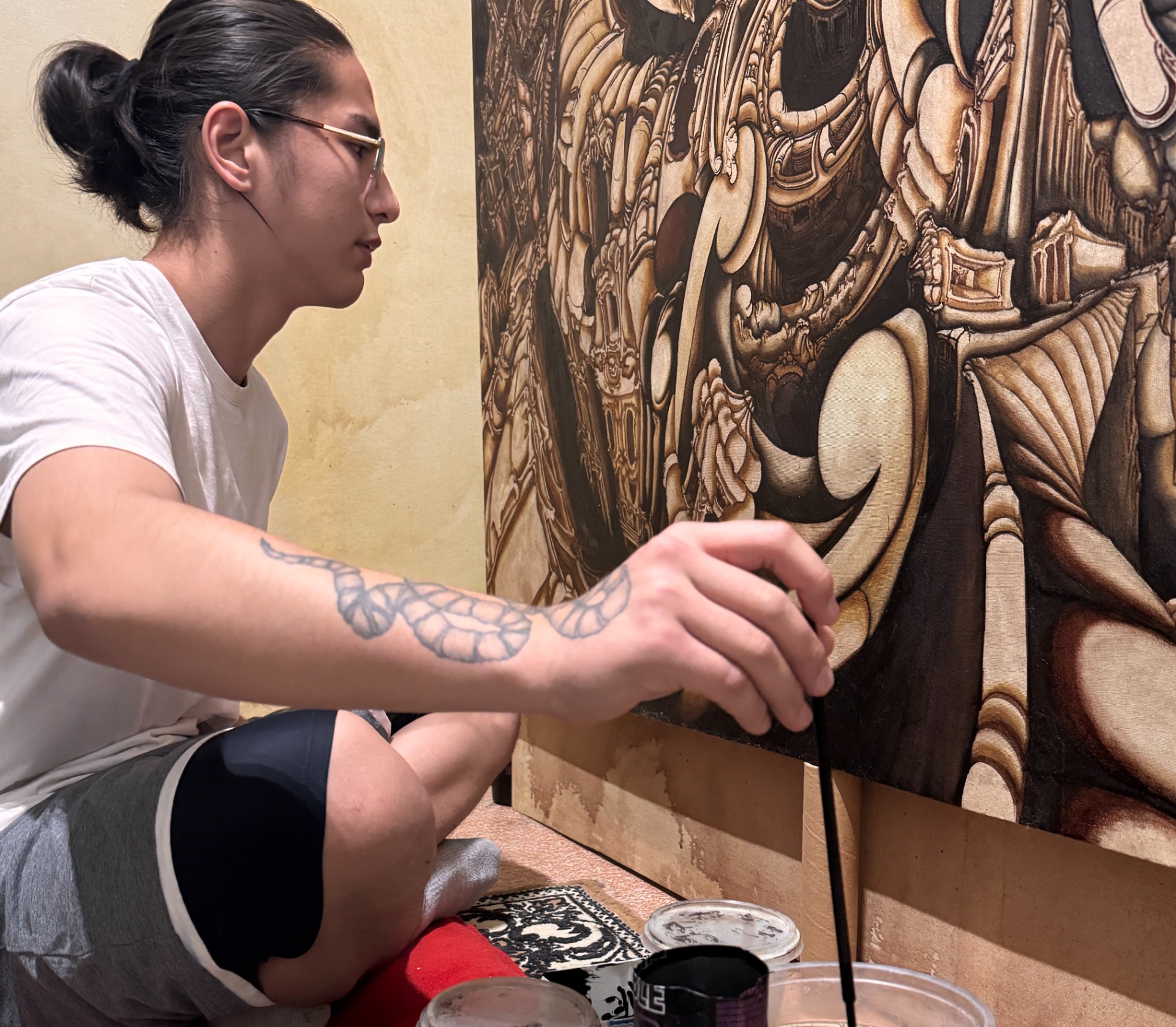 Юный художник рассказал, что с детства увлекался японским искусством — особенно гравюрами и тату-культурой якудза. Он обращал внимание на композицию, переходы и детали. Постепенно это начало отражаться и в его собственных работах.