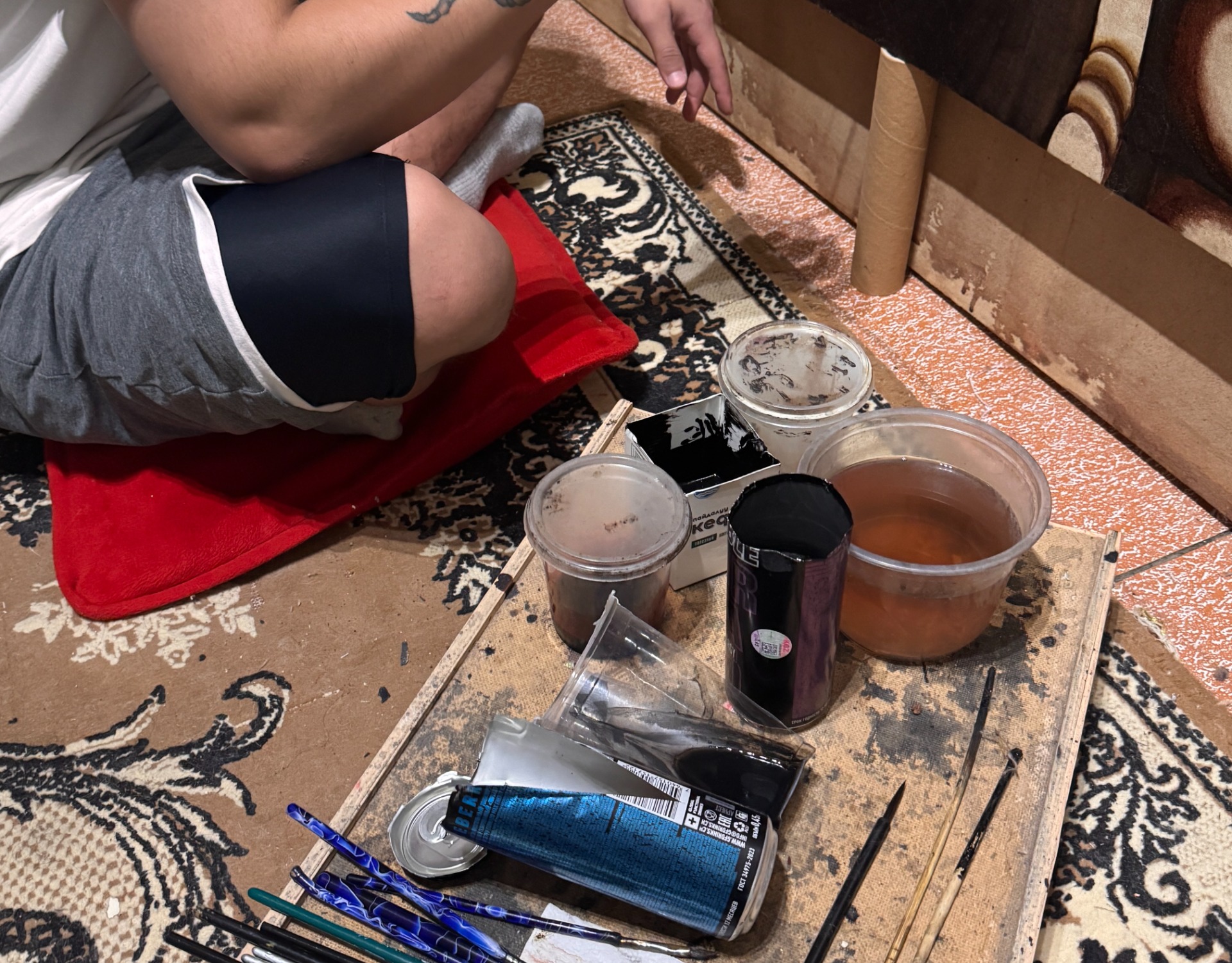 Он решил открыть небольшое производство в Бишкеке. Так он стал одним из соучредителей мини-мастерской по изготовлению холстов ручной работы. Проработал там несколько месяцев. Затем пришло разочарование, как отметил парень, холсты оказались никому не нужны.
