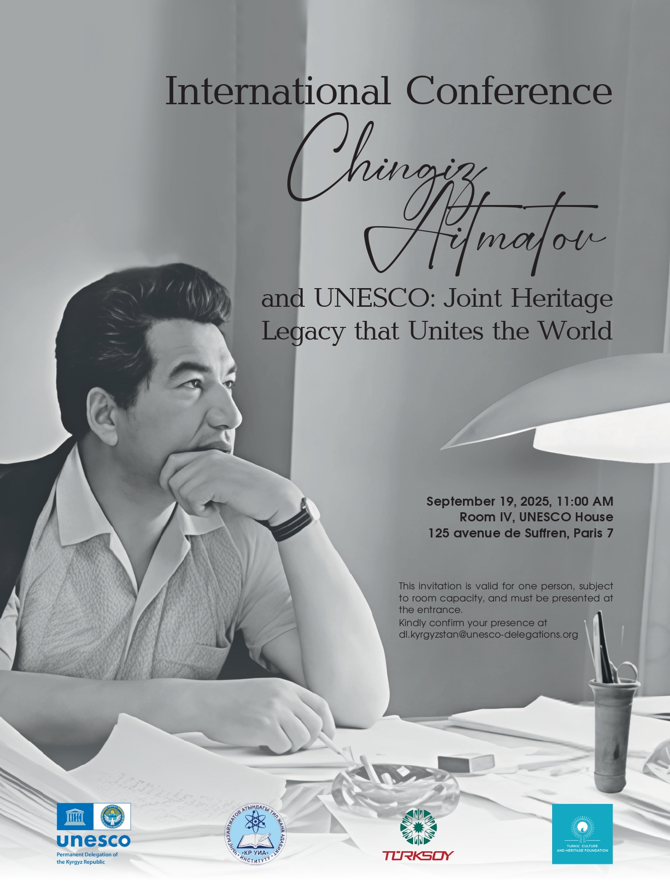 19 сентября 2025 года в штаб-квартире ЮНЕСКО в Париже состоится международная конференция «Чингиз Айтматов и ЮНЕСКО: Общее наследие, объединяющее мир». Инициатором выступило Постоянное представительство Кыргызской Республики при ЮНЕСКО. Об этом сообщает пресс-служба МИД КР.