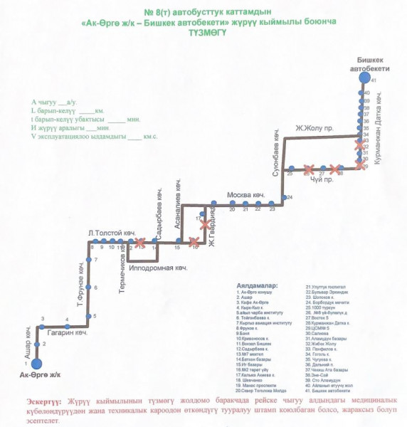 Со 2 сентября в связи с временным закрытием участков улицы Льва Толстого — от улицы Асаналиева до улицы Бакаева и от улицы Садырбаева до улицы Термечикова — изменены схемы движения четырех автобусных маршрутов.
