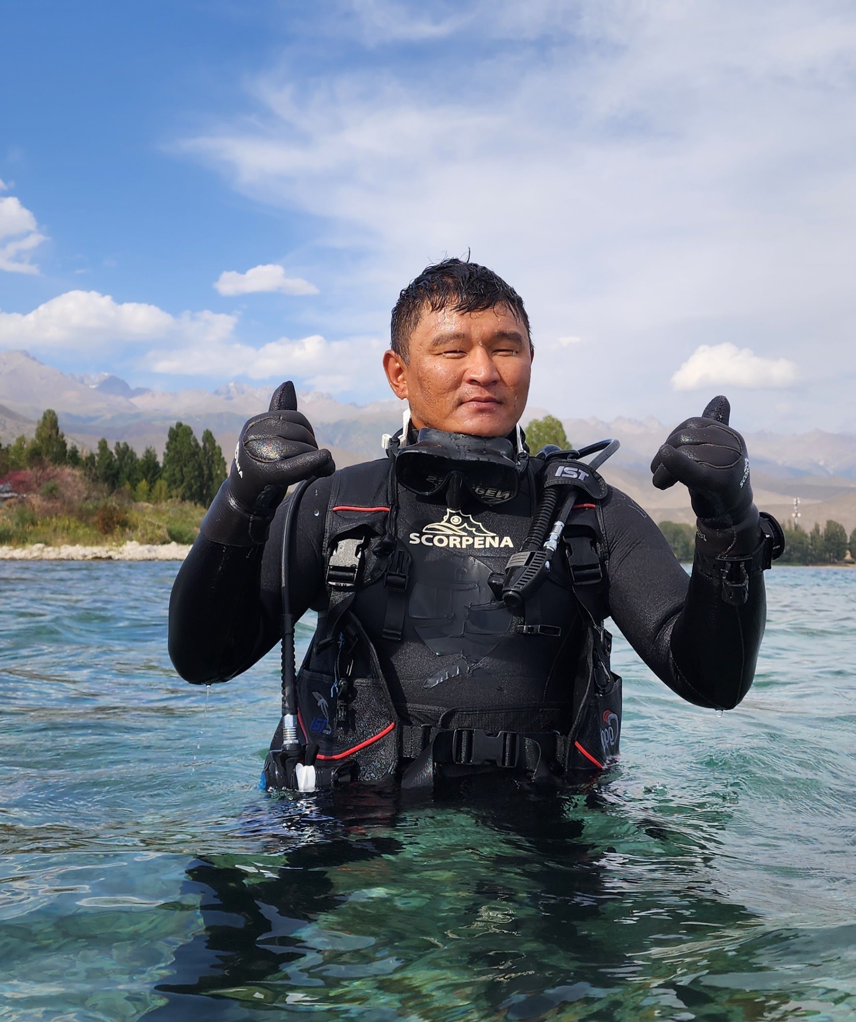 Бекжану Кубанычбек улуу 34 года. Профессионально погружаться в воду как водолаз он стал с 2020 года, но мечтал об этом с самого детства. Любовь к подводному миру родилась после просмотра фильмов французского исследователя океанов, изобретателя, писателя и режиссера Жака-Ива Кусто. Подростком он увлекался снорклингом. В своем селе Бекжан стал первым обладателем маски и ласт. Каждое лето с 2014 года он на лодке выходил в озеро и с маской и трубкой вытаскивал старые сети.«Я с детства мечтал о воде и подводном мире. Когда смотрел фильмы про Кусто, хотел стать водолазом и морским биологом. Когда я был в Питере, узнал о курсах дайвинга, получил первый сертификат PADI Open Water, дающий доступ к погружениям до 18 метров с напарником или группой. С моим первым учителем Павлом Асадом погружался в озеро Комонь и Ладога.Так начался мой путь к дайвингу», — вспоминает Бекжан.