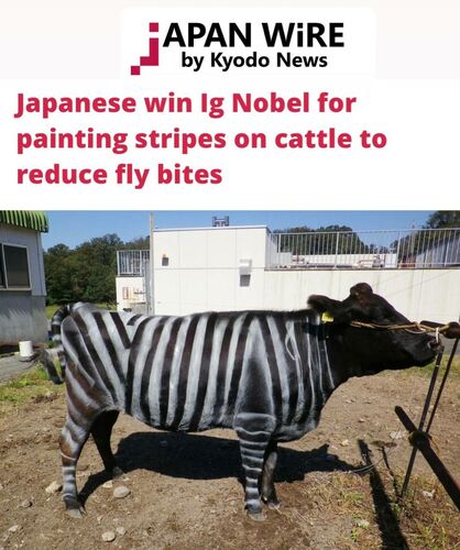 «Мы очень рады получить данную награду за то, что нам в действительности удалось продемонстрировать то, что кровососущие мухи значительно реже нападают на коров, если те покрыты рисунком из полосок, подобных тем, которые присутствуют на шкуре зебр», — заявил научный сотрудник Национальной организации сельскохозяйственных и пищевых исследований Томоки Кодзима.
