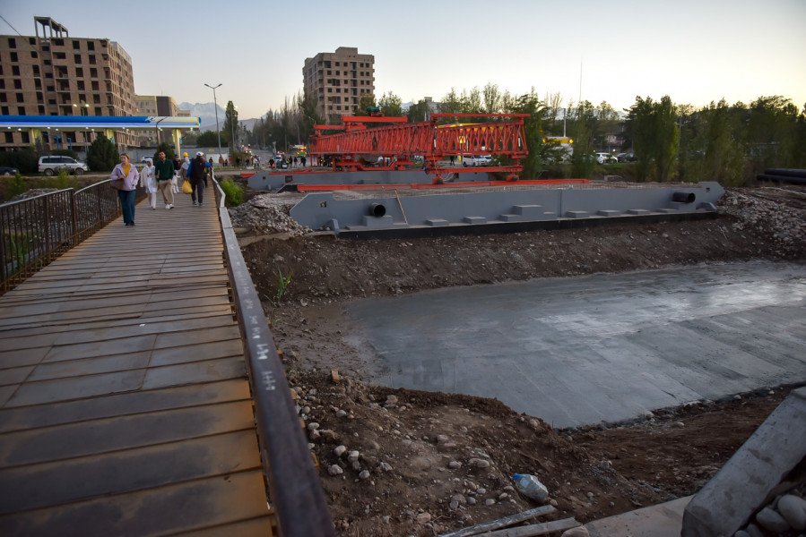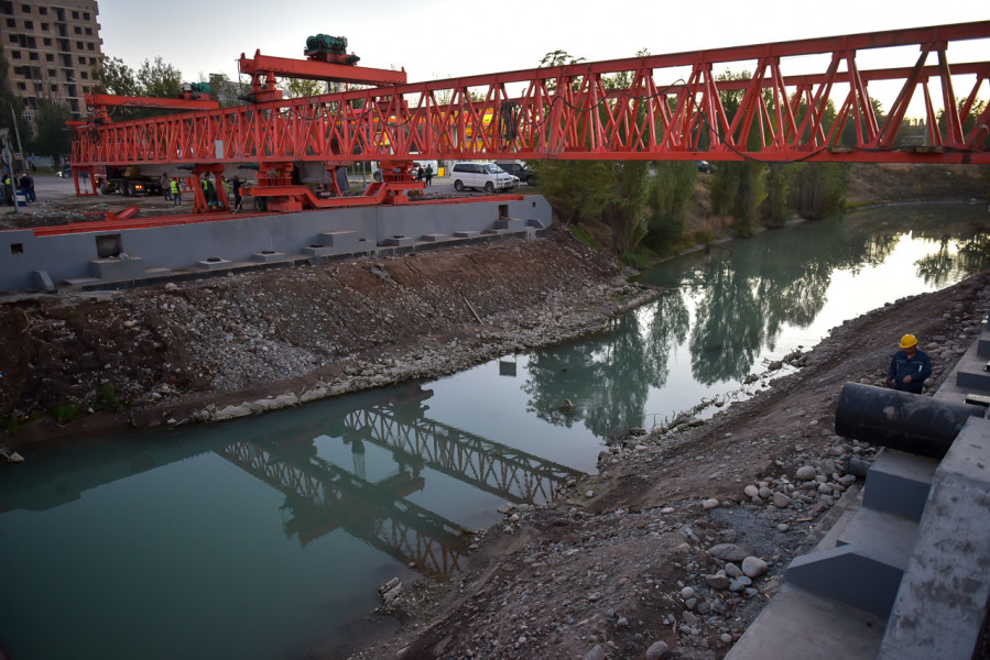 Накануне в рамках реконструкции моста на улице Ауэзова из Алматы доставлены бетонные балки. В настоящее время ведутся работы по монтажу пяти балок длиной 24 метра. Об этом сообщает пресс-служба мэрии Бишкека.