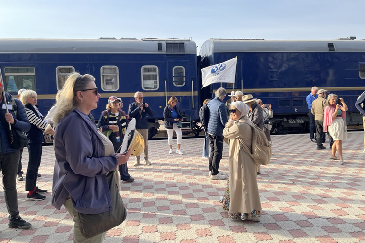 На железнодорожный вокзал Бишкек-2 30 сентября прибыл туристический поезд Golden Eagle Luxury Trains. Более 60 иностранных туристов были встречены представителями ГП «НК «Кыргыз темир жолу» с торжественным сопровождением.