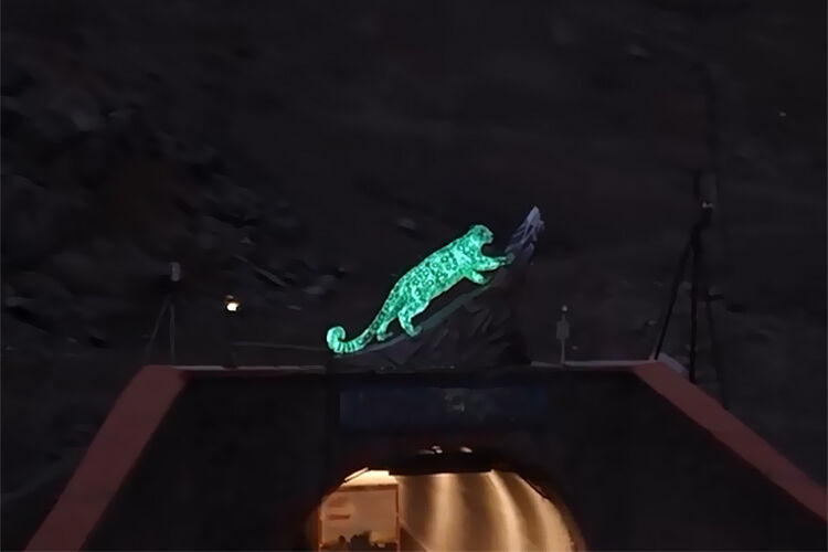 На перевале Тоо-Ашуу установили первую в истории страны монументальную скульптуру снежного барса, которая днем поражает величественными формами, а ночью загорается светом.