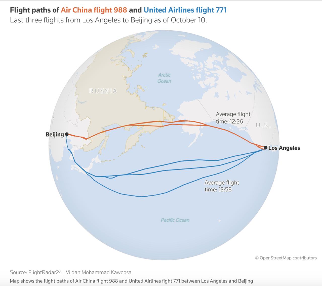 Американские авиакомпании давно жаловались, что возможность летать через Россию дает их китайским конкурентам преимущество и позволяет тратить меньше топлива, что снижает затраты.