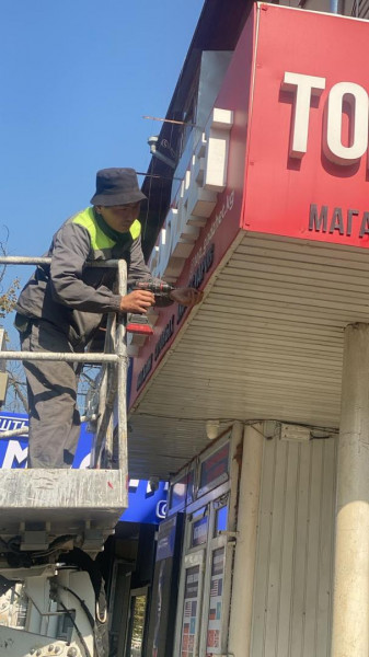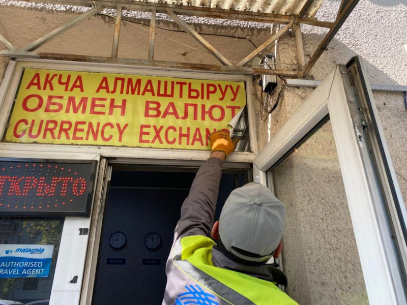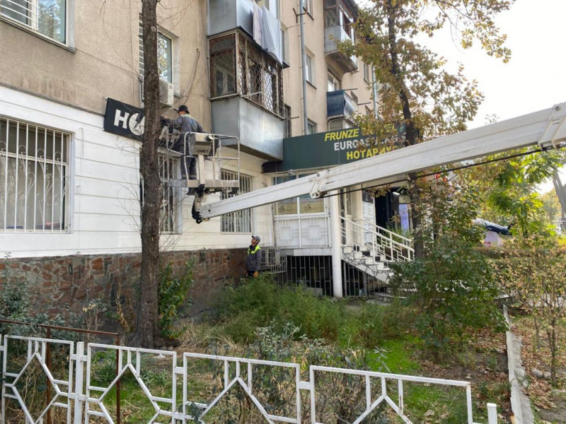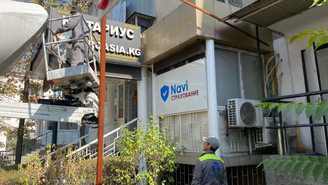 В Бишкеке демонтируют уличные аншлаги и рекламные конструкции, установленные самовольно и не соответствующие нормам государственного языка, а также требованиям утвержденного дизайн-кода. Об этом сообщает мэрия столицы.